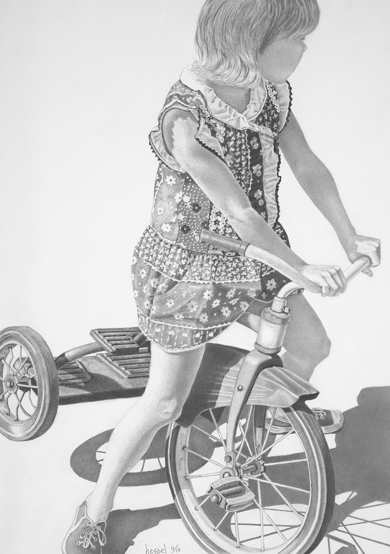 Girl on a Tricycle | Graphite Pencil Drawing | 12″x17″ | 2010 | $2,500.00 (framed) | *Limited edition prints available – $150.00 (unframed)
