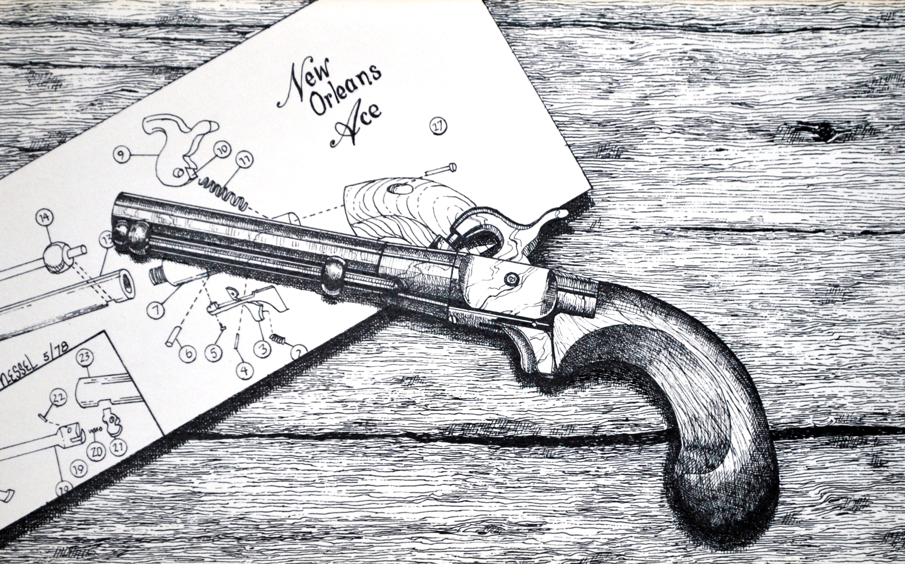 New Orleans Ace | Ink Drawing | 9″ x 6″ | 1978 | $1,000.00 (unframed)